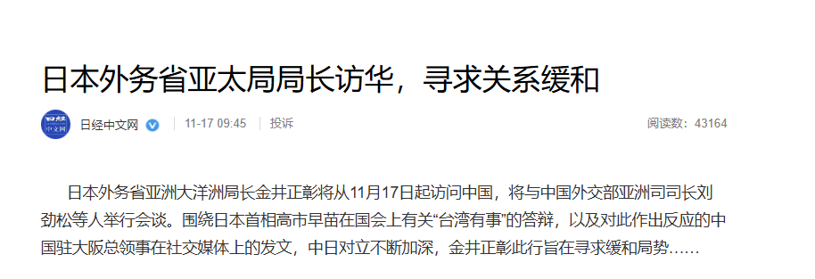 從日媒報道看,金井正彰來華還有興師問罪之嫌。